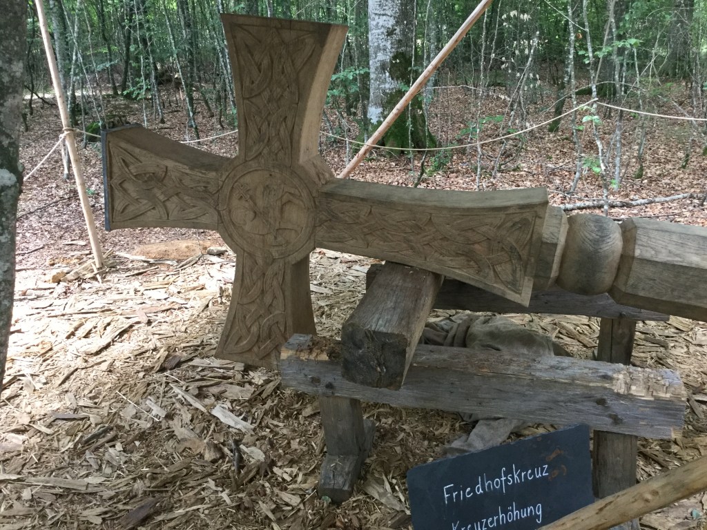 The last touch to the cemetery is the 800 kilo cross. Its stem was carved out of a single tree trunk, with designs mixing ancient Celtic and Christian motives, as they were done 1,200 years ago.